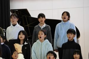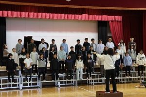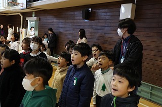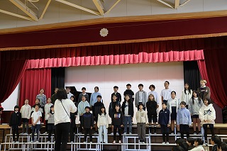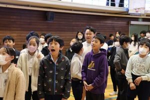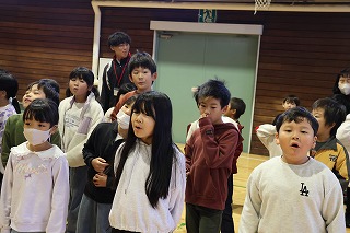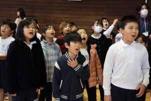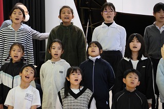 11月21日(金)のかがやき集会。発表学年は5年生でした。合唱曲「夢の世界を」は、ソプラノパートの高い音、アルトパートの音程など、難しい曲ですが、5年生の子どもたちは、体育館いっぱいに響く声で堂々と歌い上げました。さすが、まとまりのある高学年の歌声です。発音の明確さ、強弱、ハーモニーに気をつけて歌声を響かせました。何よりも伊藤先生の指揮から目をはなさず、呼吸を大切にしながら一体感をもって発表できる姿に感動しました。また、そんな5年生の歌声について「あんなふうに歌ってみたいです。」「声量があって迫力がありました。」「ソプラノとアルトの歌声が重なって素敵でした。」などと感想がもてる他の学年の子どもたちもすばらしいと思いました。