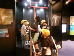・・・岐阜市科学館では、プラネタリウムの後に班の仲間と一緒に展示室を周りました。ちょうどたくさんの園児の見学と重なってしまいましたが、「小さい子を先にやらせてあげよう」とあちこちで『よびかけ』の声が聞こえました。時間がなくて、自分たちは十分に体験できたとは言えませんでしたが、みんな『やさしい』顔をして、科学館を後にしました。航空宇宙博物館では、飛行機やロケットなどの実物展示に、「すごい!」「大きい!」と歓声があがりました。広い所に来ると、思わず走ってしまう子がいましたが、「歩いて!」とすぐに声をかけて『ルールを守ろう』と意識し『よびかけて』いました。他にも、様々な場面で、仲間に関わって活動する姿がたくさん見られました。・・・