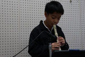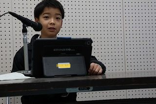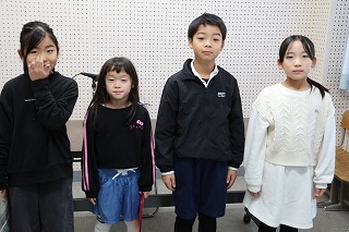 学校では、1年間を4つのステージに分けて、教育活動を行っています。後期前半の終わりには、1年生と4年生から4人が代表して、後期前半にがんばったことや後期後半にがんばりたいことを校内放送をつかって発表しました。1年生は、自分が決めた学習や生活のめあてに向かってできるようになった喜びを、4年生は仲間に働きかけ、仲間といっしょにつくりあげて感じた達成感を自分の言葉で語りました。