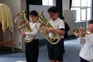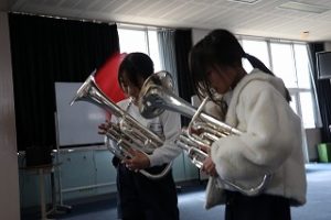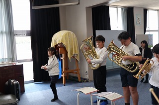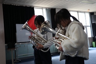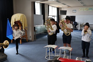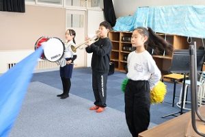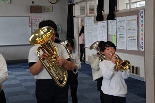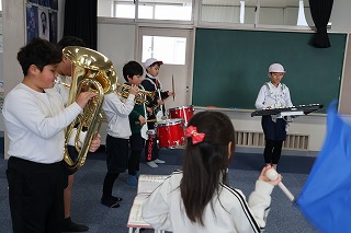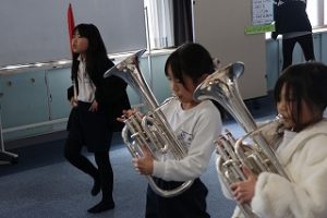 4年生のSさんたちが、「昼休み、第2音楽室で有志が集まって鼓笛練習をしています。お時間ありましたら、ぜひ見に来てください。」と校長室に来て声をかけてくれました。昼休みに音楽室をのぞくと、自分たちで声を掛け合いながら鼓笛の練習をする子どもたちの姿がありました。