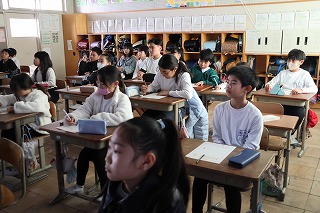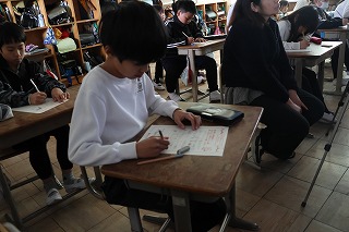 お話をうなずきながら聴く、メモを取りながら感じた思いを文章で書き表す、語り部の方に質問するなど、子どもたちは真剣に学びました。