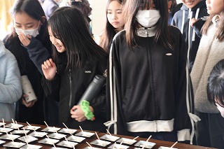 2月5日(木)、5年生が地域学習として鮎鮨(あゆずし)街道について学びました。笠松町文化協会による歴史体験授業。子どもたちは、講師の高木先生が語られる鮎鮨と笠松の歴史についてのお話を非常に興味をもって聞きました。