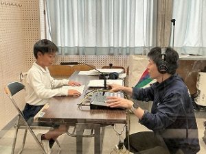 2月25日、ぎふチャン(岐阜テレビ、岐阜ラジオ)のラジオ番組「僕の時間・私の時間」の収録が校内の放送室で行われました。1年生から5年生の中で、番組に出場したい子を募り、その代表者11名が録音に臨みました。作文のタイトルは自由。一人一人が今伝えたい自分の思いを話しました。