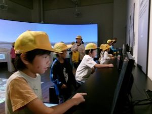 ・・・岐阜市科学館では、プラネタリウムの後に班の仲間と一緒に展示室を周りました。ちょうどたくさんの園児の見学と重なってしまいましたが、「小さい子を先にやらせてあげよう」とあちこちで『よびかけ』の声が聞こえました。時間がなくて、自分たちは十分に体験できたとは言えませんでしたが、みんな『やさしい』顔をして、科学館を後にしました。航空宇宙博物館では、飛行機やロケットなどの実物展示に、「すごい!」「大きい!」と歓声があがりました。広い所に来ると、思わず走ってしまう子がいましたが、「歩いて!」とすぐに声をかけて『ルールを守ろう』と意識し『よびかけて』いました。他にも、様々な場面で、仲間に関わって活動する姿がたくさん見られました。・・・