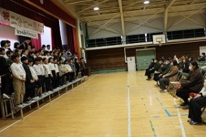 2月6日(金)の授業参観の日、4年生の「二分の一成人式」が体育館で盛大に行われました。10才を迎えた(これから迎える)子どもたちは、「二分の一成人式」への取組の中で、これまでの自分の成長を振り返り、自分の成長を支えてくれた人の存在に改めて気付き、感謝の思いを深めたり将来の夢を抱いたりしてきました。この日は、参加してくださった保護者の前で、一人一人が自分の夢を語り、そのために今がんばりたいことを自分の言葉で発表しました。思いを込めて「しあわせになあれ」と「10才のありがとう」を合唱。そして、保護者宛に書いた手紙をそれぞれが手渡しました。心震える、そして心温まる素敵な式となりました。